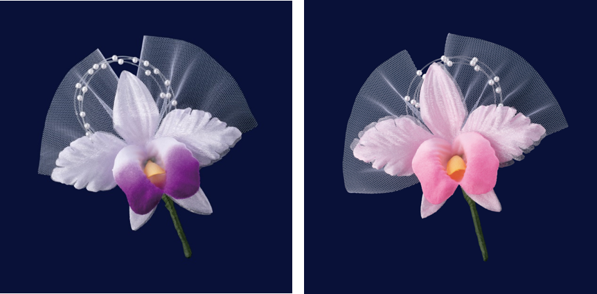 「男子と女子でコサージュの色分けをしたい」というご要望がある一方で、「男女どちらがつけても見栄えがする商品は?」というご要望も多くいただきます。そんなときにおすすめの商品がこちらの「カトレアリーベ」です。カトレアのお花自体が上品なイメージを演出してくれるので男女どちらがつけても違和感はありません。