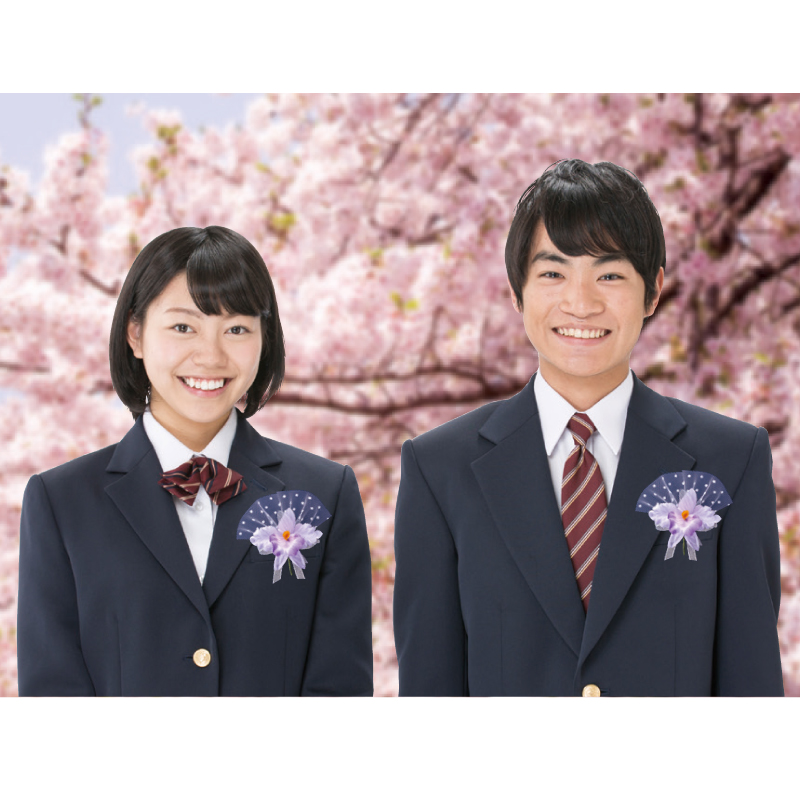 「制服の色がグレーの場合、紫のコサージュを付けたら落ち着いたイメージになりすぎてしまいますか?」「黒の制服だけれど、紫のコサージュは映えますか?」など、実際に付けた時のイメージが分からないと、数多くの相談の問合せを頂きます。そこで、今回様々な制服での着用イメージを紹介します。是非、参考にご覧下さい!
