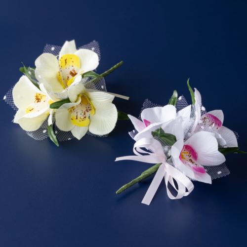 コチョウランの花言葉は「幸福が飛んでくる」です。その名の通り、笑顔があふれる幸せいっぱいの式典に是非おすすめしたいコサージュです。