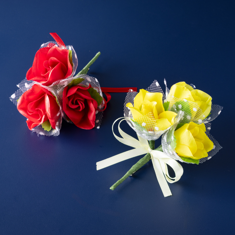 3つのバラが集まった花束のような可愛らしいのコサージュ。