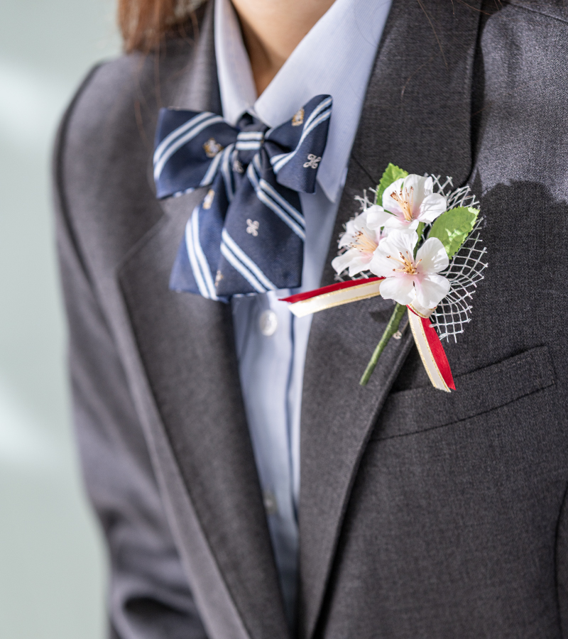 男女でコサージュの色を変えたり、クラス毎にコサージュの色を分けたりすると、式典が華やかな印象になります。